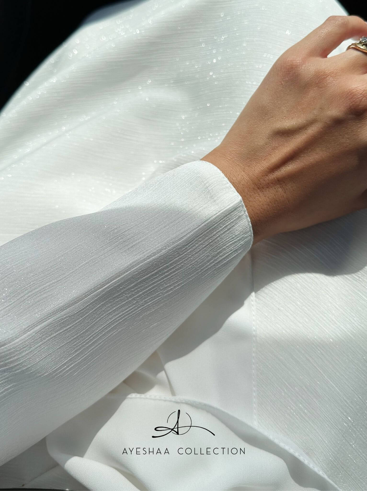 abaya blanche, abaya mariage, abaya eid, abaya prestige, ensemble blanc, ensemble mariage, hijab blanc, mastour, femme musulmane