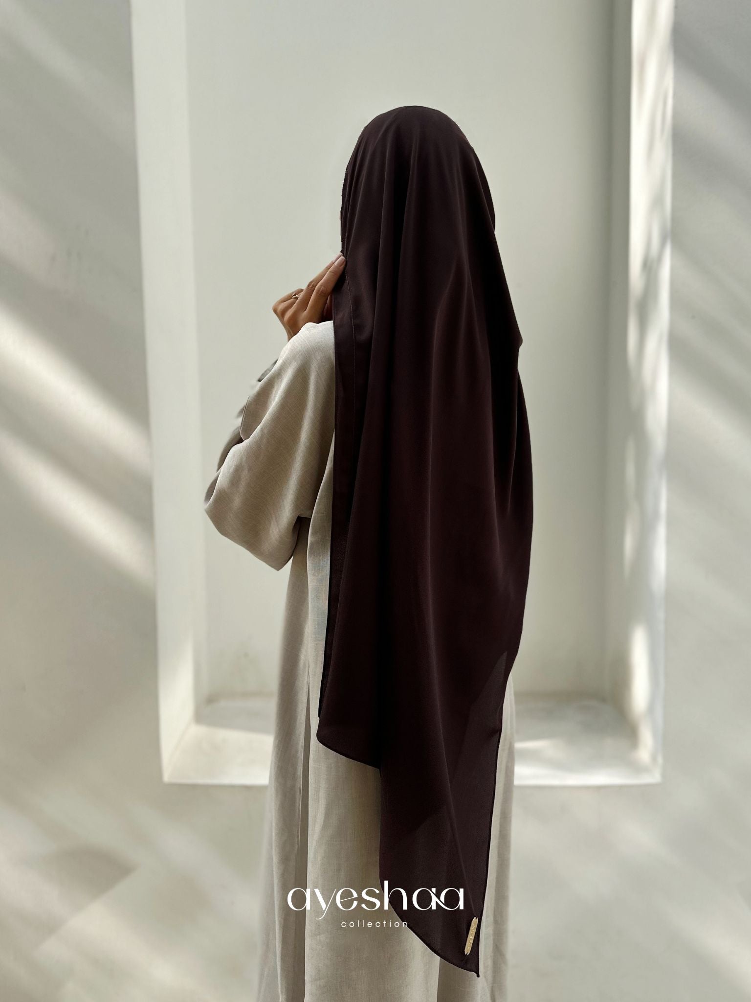 Unique on the market, our Line hijab stands out with its extra-long length, premium fabric, a subtle gold Signature plate, and an elegant embroidered detail that beautifully enhances the design.